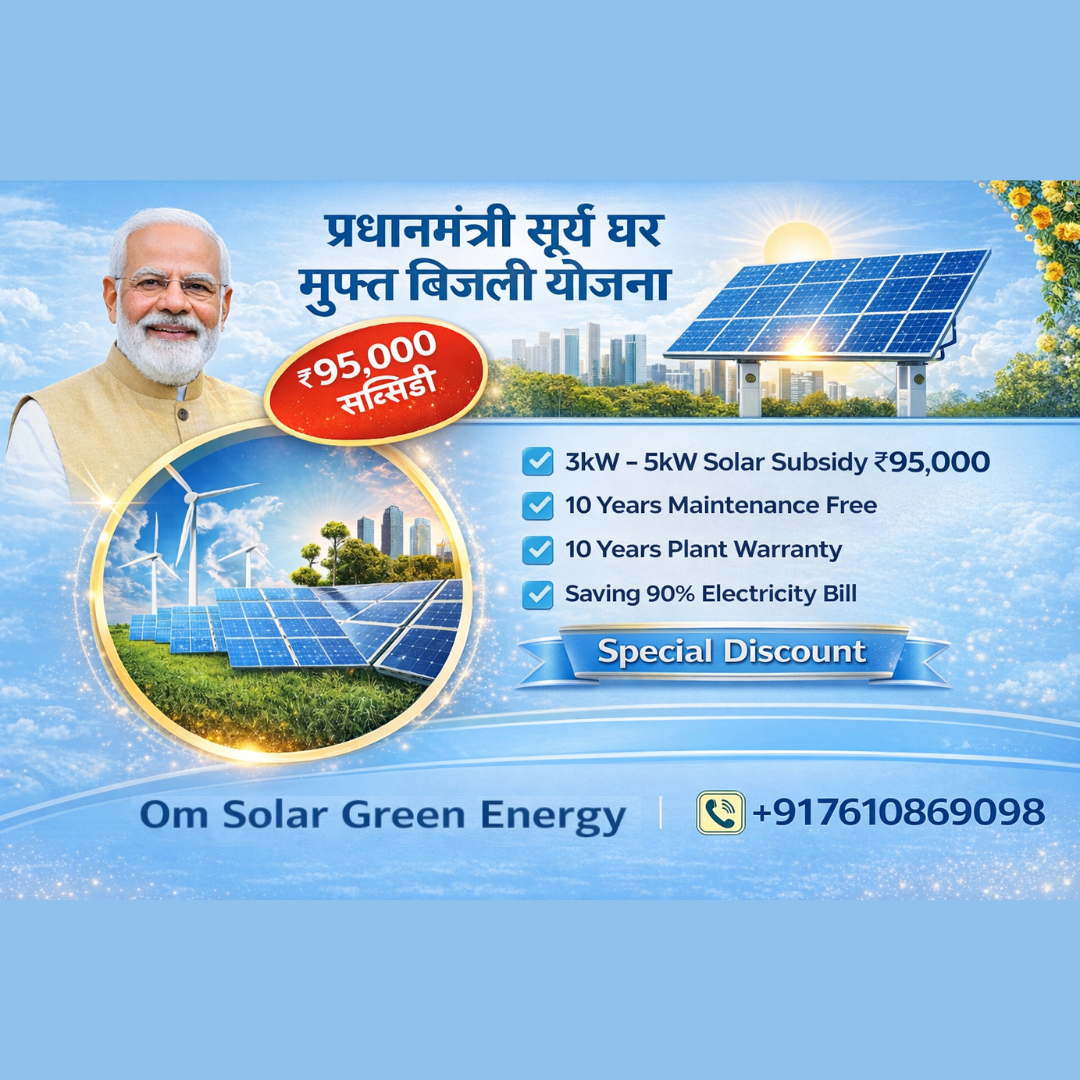 At OM Solar Green Energy, Jaipur, we proudly support this national mission by delivering complete rooftop solar solutions under the PM Surya Ghar Yojana. Our expert team ensures smooth installation, proper documentation, and hassle-free subsidy processing for homeowners across Jaipur and Rajasthan.